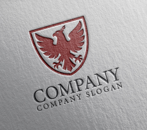 赤一色でデザインされたこのロゴマークは、鷹のシルエットを紋章風に構成した重厚で堂々としたデザインです。広げた翼は力強さと守護の象徴であり、中央に構えた鷹の姿はリーダーシップや信念、そして揺るがぬ誇りを表現しています。シンプルでありながら細部に洗練された美しさを宿し、どのような業種にも高級感と信頼感を与えるロゴです。伝統と現代性を融合させたスタイルは、ブランドの核となる「強さ」と「品格」を視覚的に伝えます。