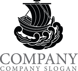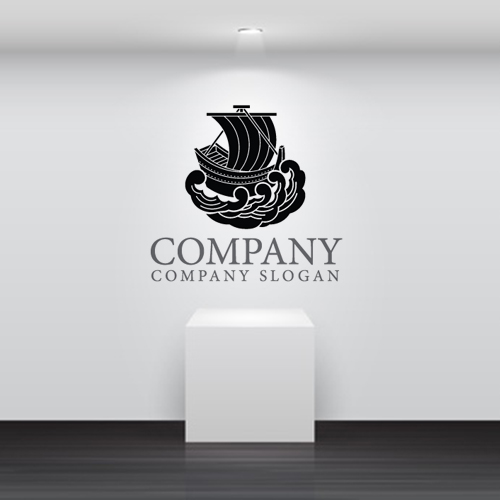 船・波・帆船・海・ロゴ・マークデザイン057 [TV057-BK6]