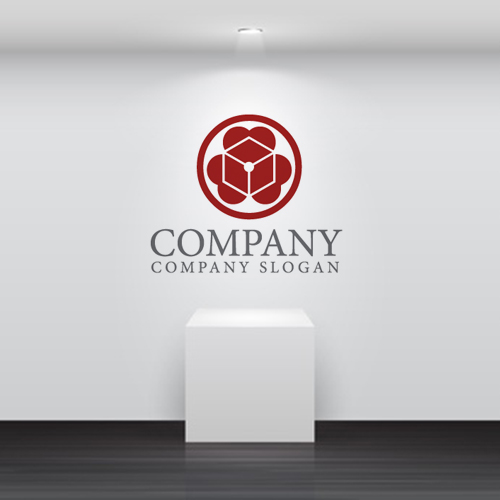 ハート・箱・輪・六角形・ロゴ・マークデザイン1440 [KT1440-R6]