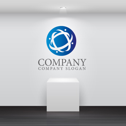 人・輪・曲線・グラデーション・協力・会社ロゴ・マークデザイン1529 [HT1529-BG6]
