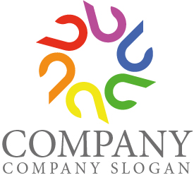 花・太陽・虹色・U・アルファベット・ロゴ・マークデザイン1363