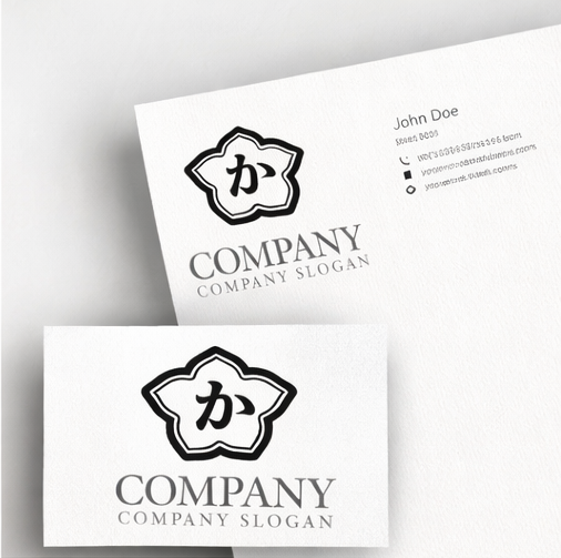 このロゴマークは、五弁の花の形の中に「か」の文字を配したデザインで、和の文化や伝統、調和を象徴しています。花の輪郭は安定感と柔らかさを併せ持ち、中心に置かれた文字がブランドや組織の核となる価値を表現しています。全体のバランスは、親しみやすさと信頼感を両立しており、見る人に安心感と印象的な存在感を与えます。紙にエンボス加工を施すと、花びらの輪郭と文字の立体感が際立ち、上質で丁寧な印象を演出します。名刺やレターヘッドでは端正で落ち着いた印象を与え、ウェブサイトや看板では遠目からでも視認性が高く、ブランドの象徴として強く機能します。業種や規模を問わず、調和、誠実さ、長く寄り添う価値を伝えるブランドにふさわしいロゴマークです。