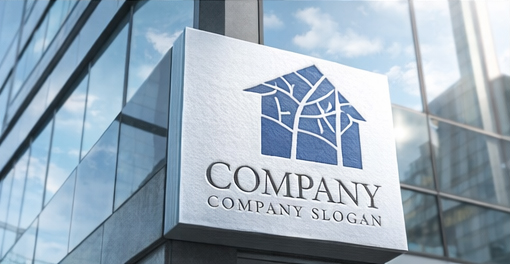 木の枝のようなラインを家のシルエットに重ねたこのロゴは、建築物と自然環境が共生する姿を象徴しています。内部に広がる枝の模様は“成長・つながり・生命力”を表し、住まいや空間づくりにおいて持続可能な価値を追求するブランドの理念を表現しています。落ち着いたブルーは誠実さと安心感を伝え、信頼に足る企業姿勢を視覚的に示すデザインとなっています。