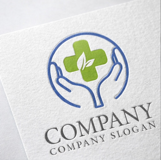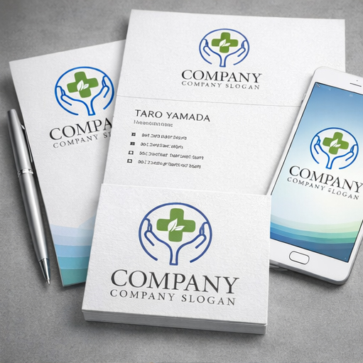 両手で大切に支えるようなフォルムの中にグリーンのクロスとリーフを配置したシンボルマークです。手のモチーフは思いやりや保護、安心感を象徴し、中央のクロスは医療・ケア・専門性を明確に伝えます。さらに葉を組み合わせることで自然との調和や回復、健やかな未来への願いを表現しています。円形の構成が調和と信頼を印象づけ、訪問看護や地域医療、福祉サービス、予防医療分野などにふさわしい温かみと誠実さを兼ね備えたロゴデザインです。