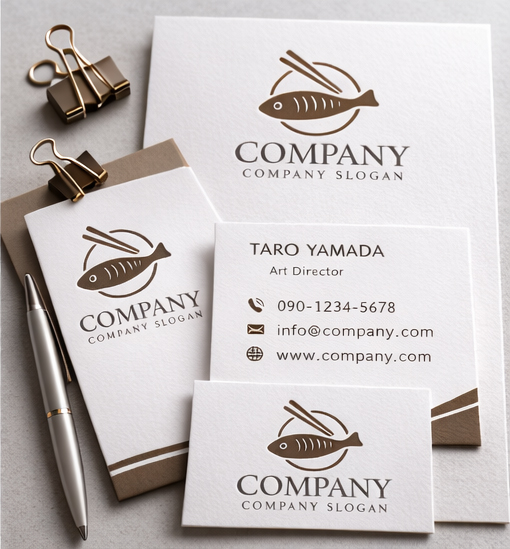 シンプルな魚のシルエットに箸を添え、丸いラインで軽やかにまとめたロゴマークです。落ち着いたブラウンカラーが海鮮料理や和食業態の上質さを引き立て、無駄のない構図が視認性とプロフェッショナリズムを両立しています。魚×箸という直感的なモチーフは、寿司屋、定食屋、海鮮居酒屋、テイクアウト専門店、食品加工ブランドなど幅広い用途に馴染み、信頼感のある食のブランドイメージを築くのに最適です。飽きずに長く使える、洗練されたミニマルデザインが魅力です。