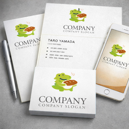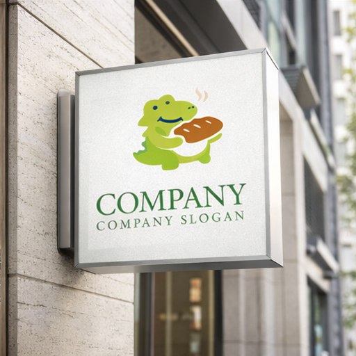 にこやかなワニが焼きたてのパンを大事そうに抱えている姿を描いたロゴマークです。明るいグリーンのワニと香ばしいパンの組み合わせが、親しみやすさとおいしさを直感的に伝えます。かわいらしいキャラクター性がありながらシンプルなフォルムで視認性も高く、ベーカリー、カフェ、子ども向けフードブランド、ファミリー向けショップなどにぴったりのデザインです。見る人に温かさと楽しさを感じさせる、印象に残る会社ロゴとして幅広い媒体で活躍します。