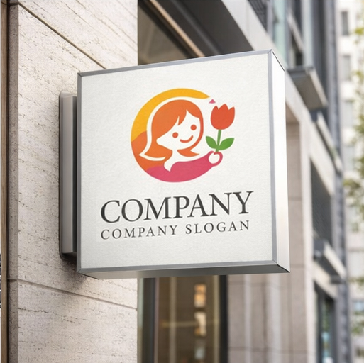 花を手にした女の子の笑顔をモチーフにしたロゴマークです。あたたかみのあるオレンジとピンクのグラデーションが、やさしさ・思いやり・明るさを表現し、手に持つチューリップが「感謝」「愛情」「贈り物」といったポジティブなイメージを象徴しています。丸いフォルムでまとめられたデザインは親しみやすく、フラワーショップ、ギフトショップ、子ども向けサービス、カフェやライフスタイルブランドなどにぴったりの会社ロゴです。見る人に温かい印象を残し、ブランドのやさしい世界観を自然に伝えます。