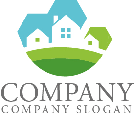 「街並みと自然を描いた住宅ロゴマーク」
