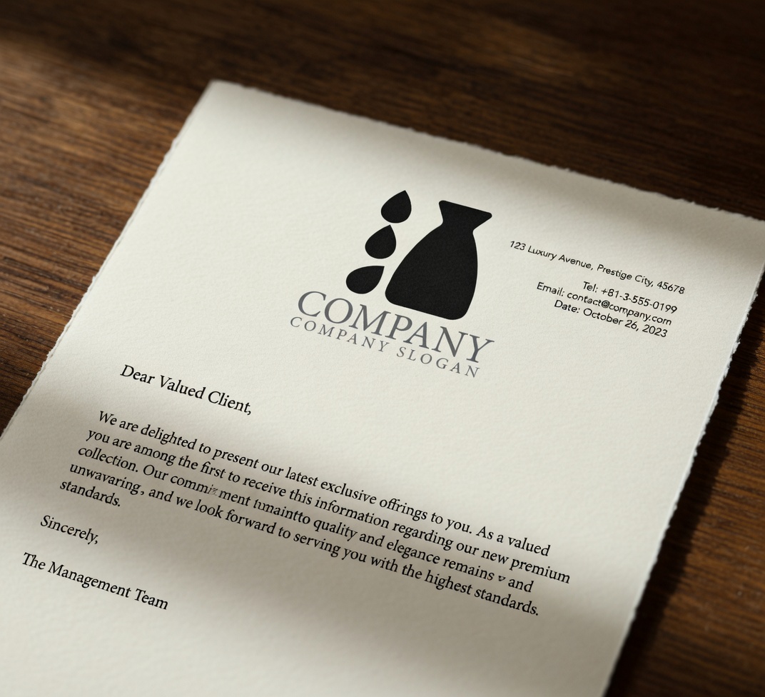 この会社ロゴは、漢字の「酒」をモチーフに、3つの滴が優雅に連なる流動的なシルエットと、安定感のある酒瓶の形をミニマルに配置したシンプルで上質なデザインです。滴の連なりが酒の雫や醸造のプロセスを、瓶のシルエットが伝統的な酒器の美しさを現代的に表現しており、全体として酒の文化的な深みとモダンな洗練さを両立させています。力強い黒のコントラストが際立つこのマークは、記憶に残る印象を与えるとともに、プロフェッショナルでタイムレスなブランドイメージを強く表現し、名刺やレターヘッド、ウェブサイト、看板など多様な用途で高級感を演出できる理想的な会社ロゴです。