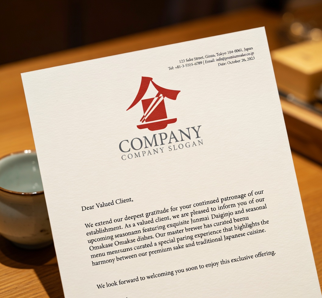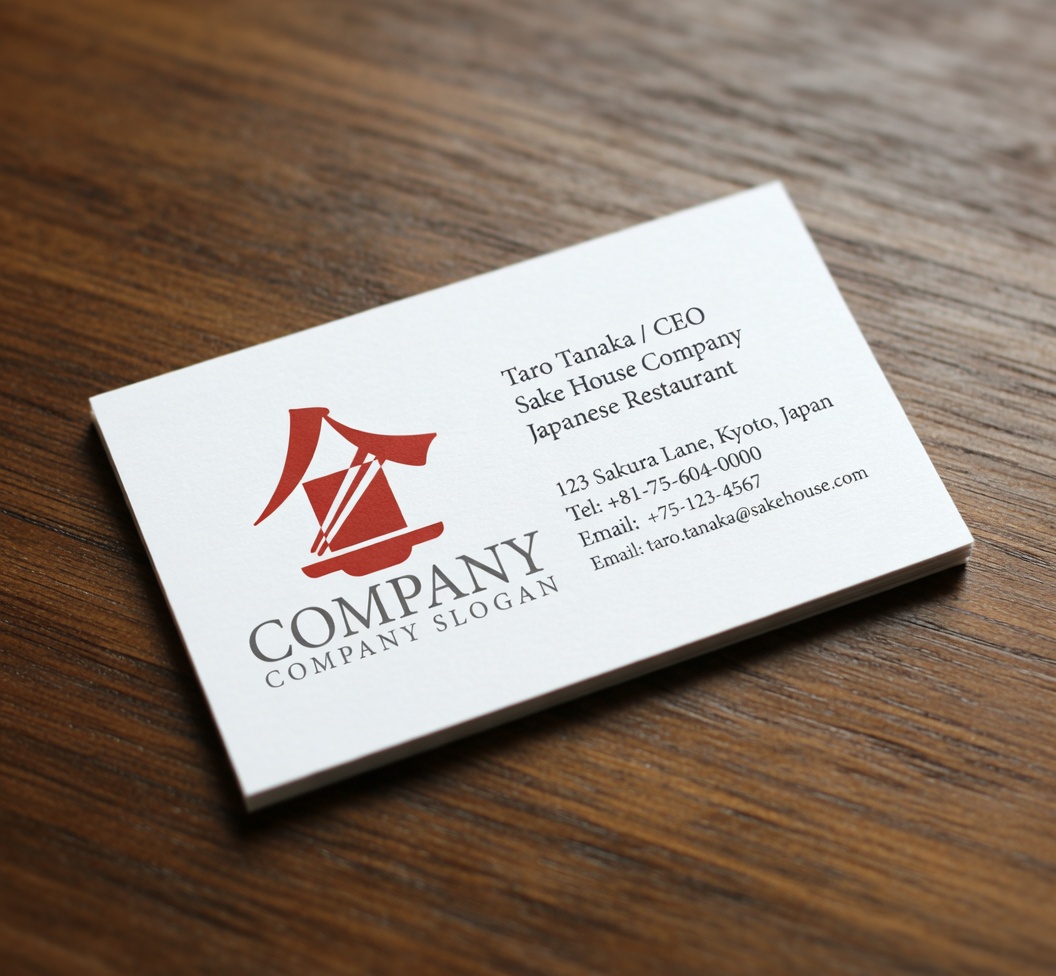 このロゴマークは、漢字の「食」をイメージした家屋風の屋根と、杯やお皿のシルエットをシンプルに組み合わせたモダンで象徴的なデザインです。赤の鮮やかな色が食卓を囲む温かな雰囲気と日本酒の華やかさを表現しており、伝統的な和の要素を現代的に昇華させたフォルムが特徴で、プロフェッショナルでありながら親しみやすい会社シンボルとして、幅広いメディアで美しく映えます。